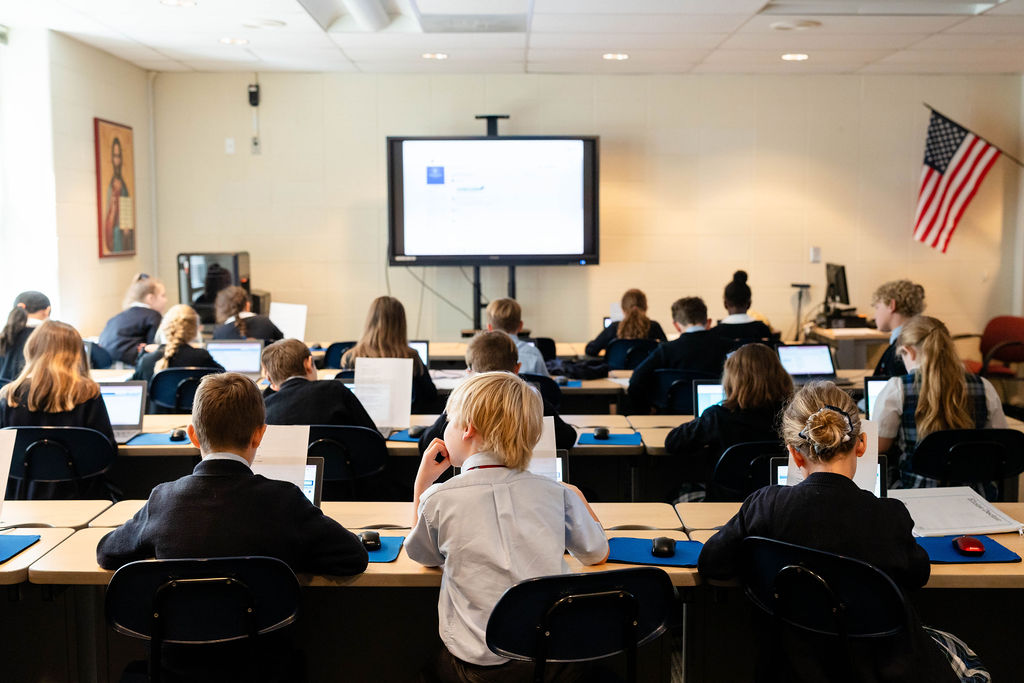 A multi cross-curricular approach is used to teach literacy in the middle school. Students study novel units that also incorporate concepts and units of study taught in Social Studies, Religion, and Science. Works from Shakespeare are studied in the spring and the students put on an annual Shakespeare Festival for the younger students to enjoy.