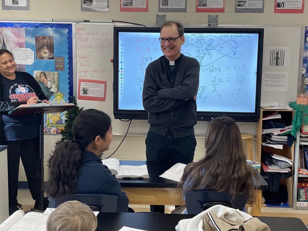 The priests of Our Lady of Hope Parish visit classrooms whenever they would like the opportunity. We are so grateful for the active presence of our religious!